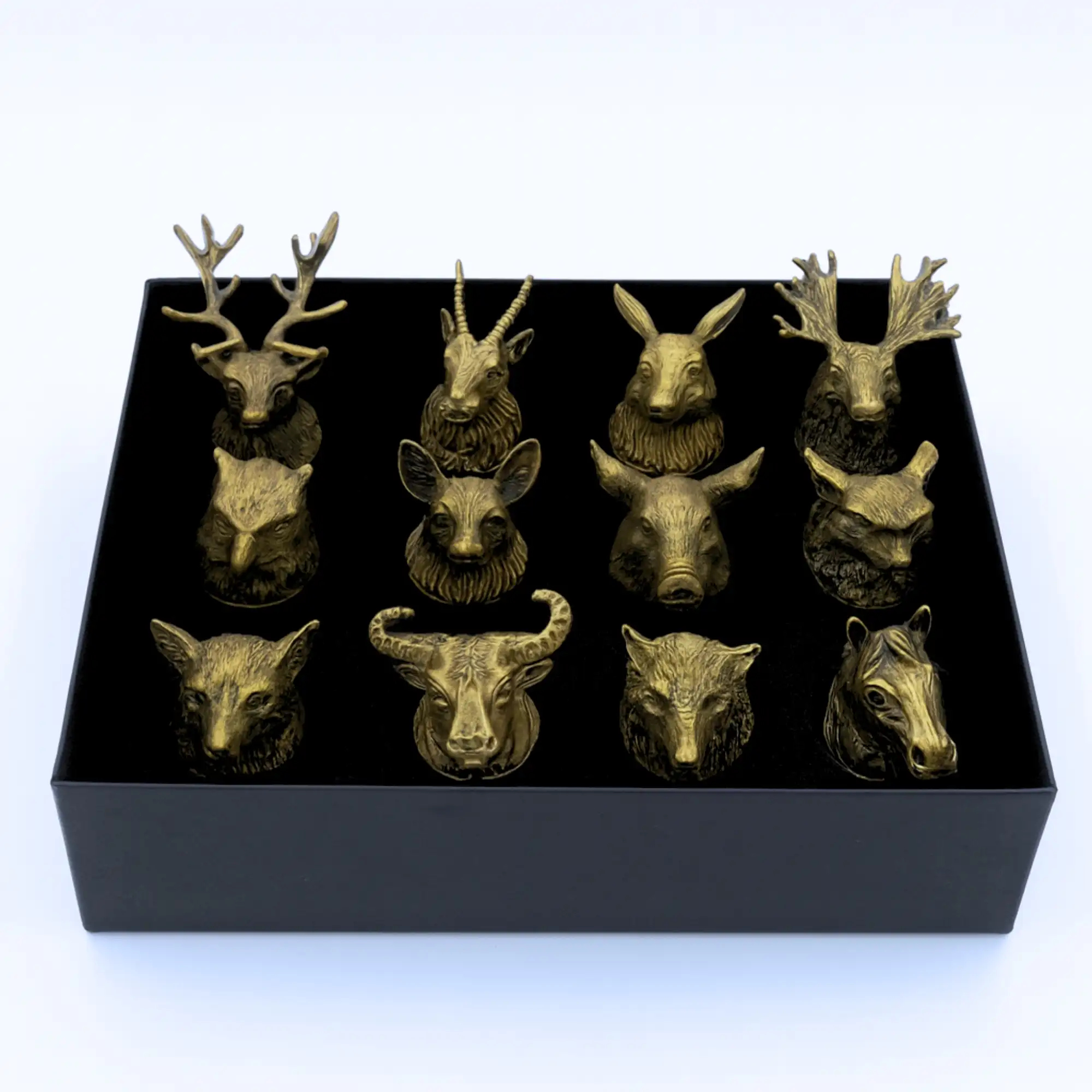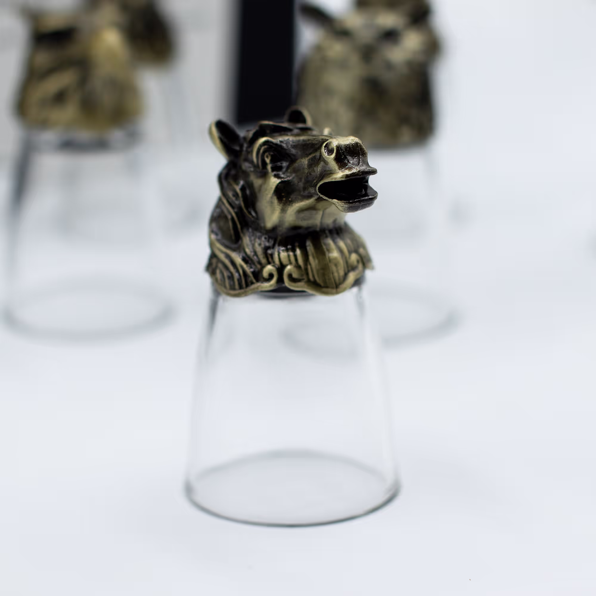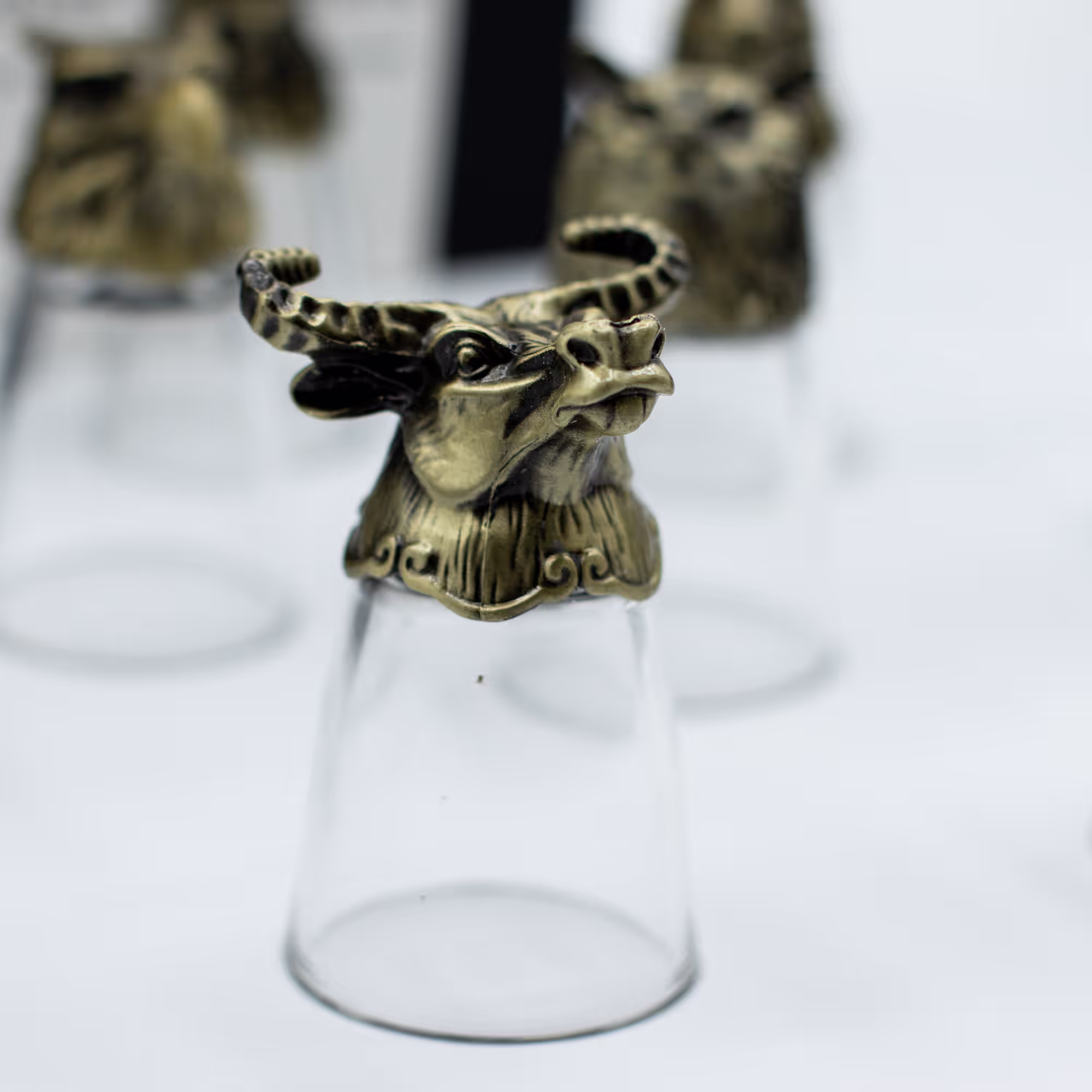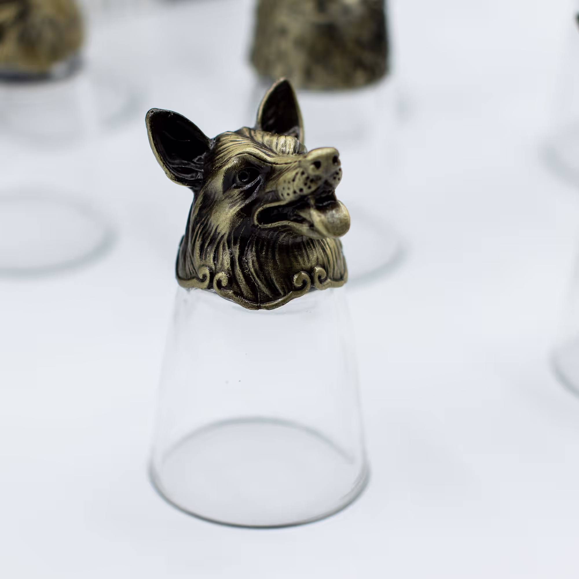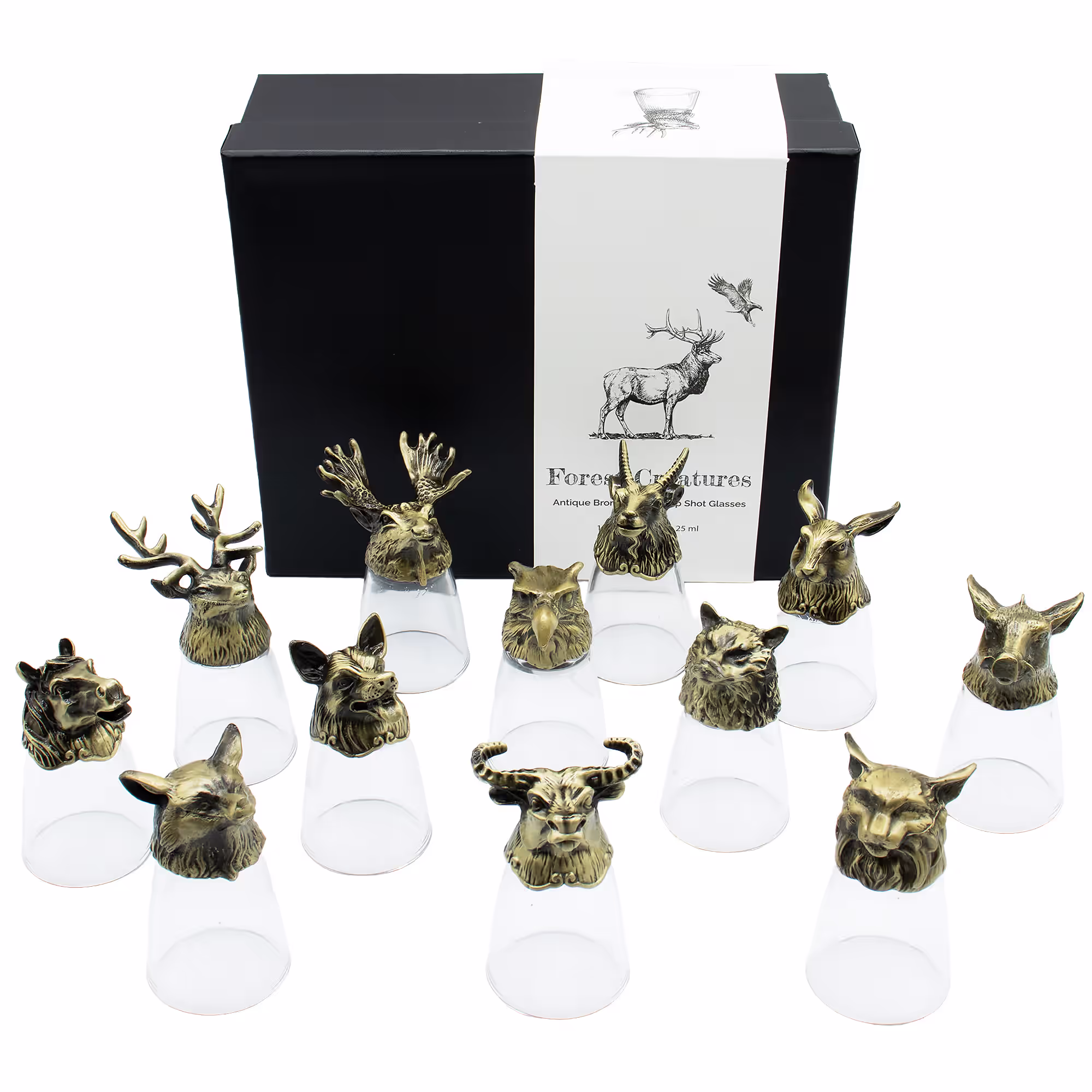 Gläserset aus 12 Schnapsgläsern - Sockel Wald- & Fabelwesen - Antikbronze